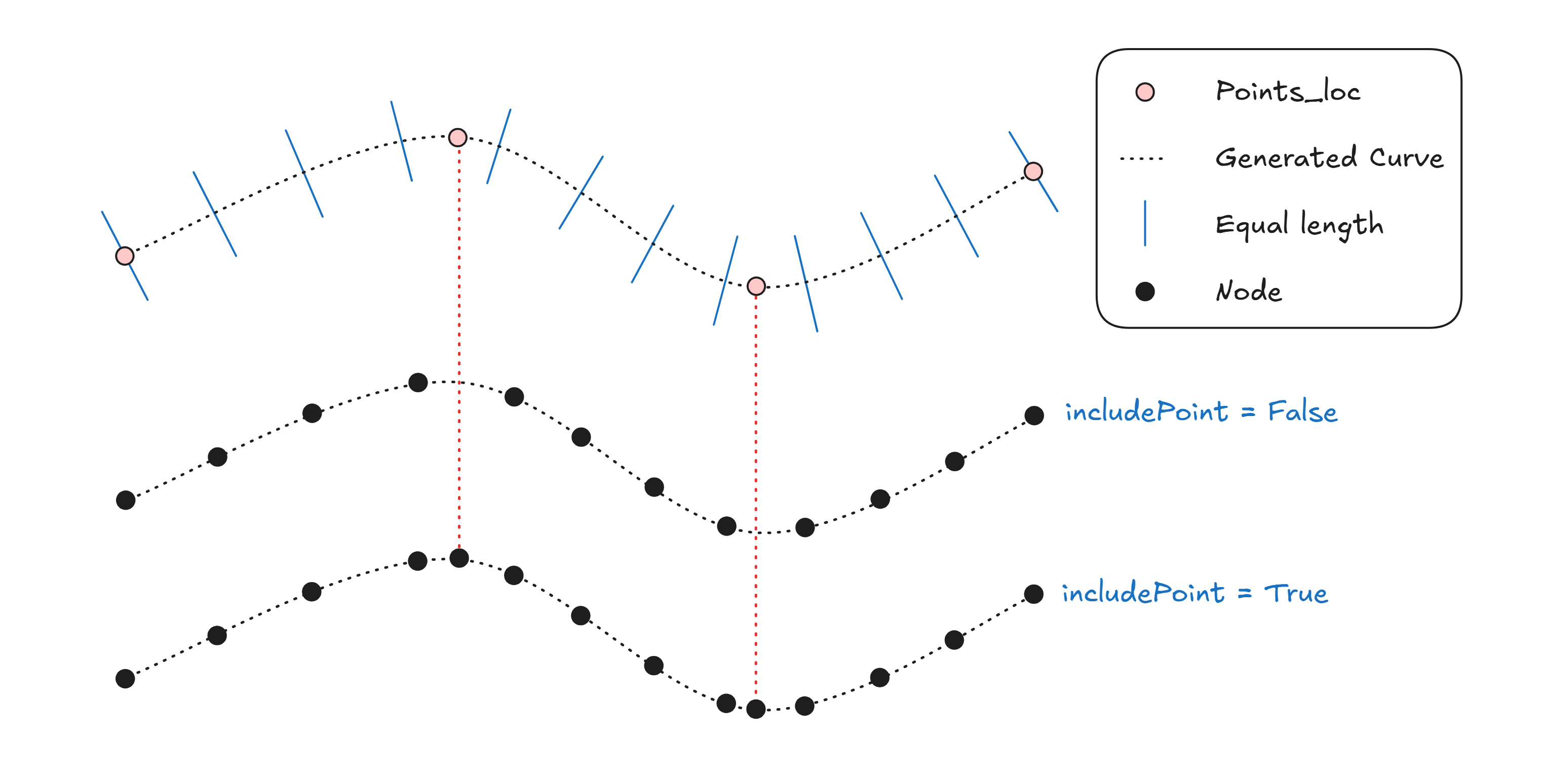 It allows dividing a curve into equal-length segments while providing an option to include the original input points (even if they donβt coincide with the division points).