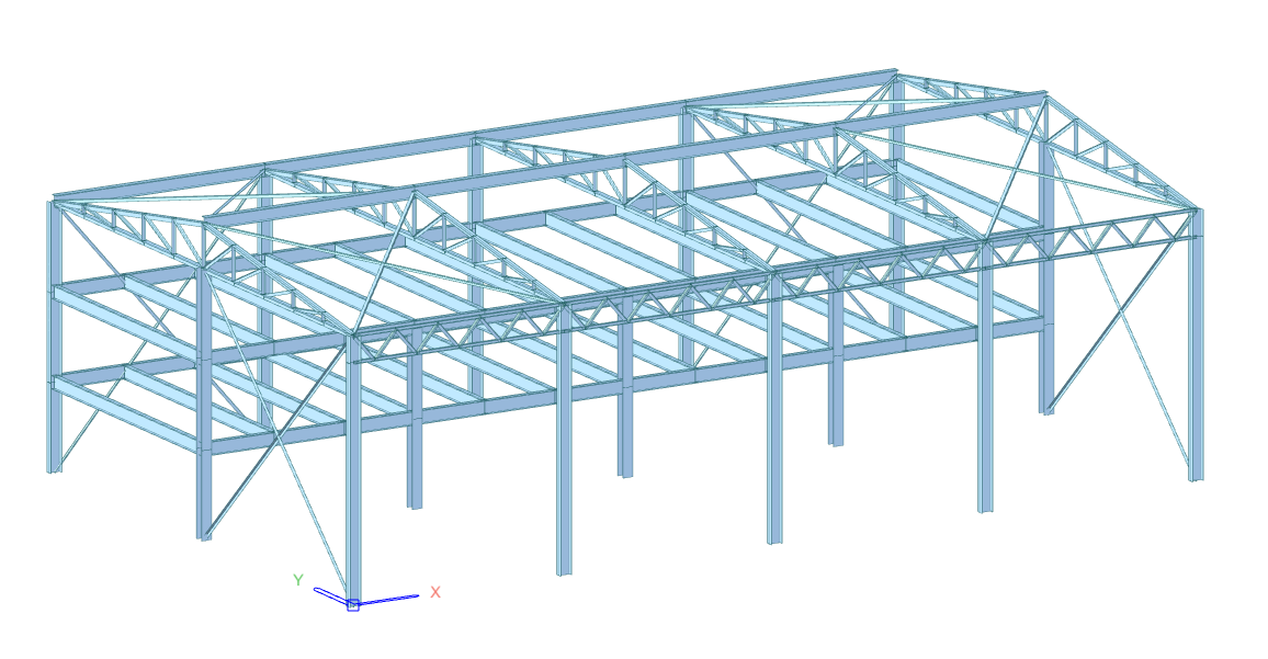 Element.Truss.SE([(i)*bay_length,0,bay_height],[(i+1)*bay_length,bay_width,bay_height+truss_centre_height],sect=7)